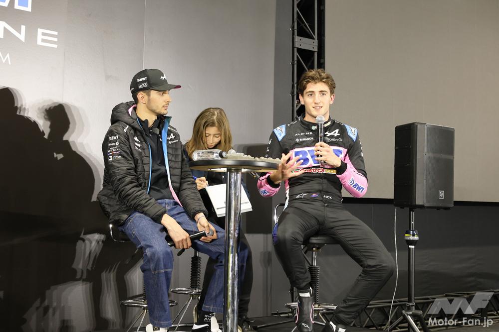 登壇したのは、アルピーヌ F1 チーム参加ドライバーのエステバン・オコン(Esteban Ocon・ドライバー)とジャック・ドゥーハン(Jack Doohan・リザーブドライバー)の2氏。