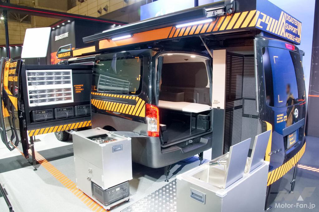 とはいえ、特定の場所で住民の避難場所などとして活用するのではなく、必要に応じて移動できるメリットを生かして、主に防災拠点(ハブ)としての役割を目指している。ここでは、そのようなコンセプトから生まれた日産自動車の「Disaster Support Mobile-Hub」を中心に紹介していこう。
