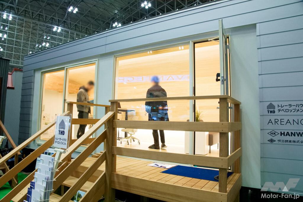 そんなときに活躍しそうなのがトレーラーハウスだ。この車両は、Aフレームやラダーフレーム構造のトレーラーに、目的に応じたハウス部分を乗せるだけで完成するので、比較的簡単に製作できるメリットがある。しかも、キャンピングトレーラーと同様にけん引して自由に移動できる機動性を持ち合わせているので、ジャパンキャンピングカーショー2024でも、さまざまなタイプのトレーラーハウスが展示されていた。