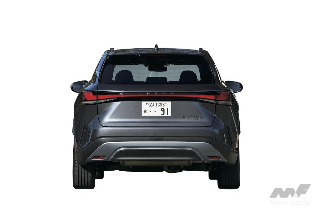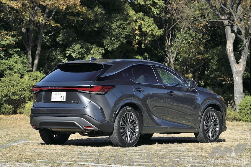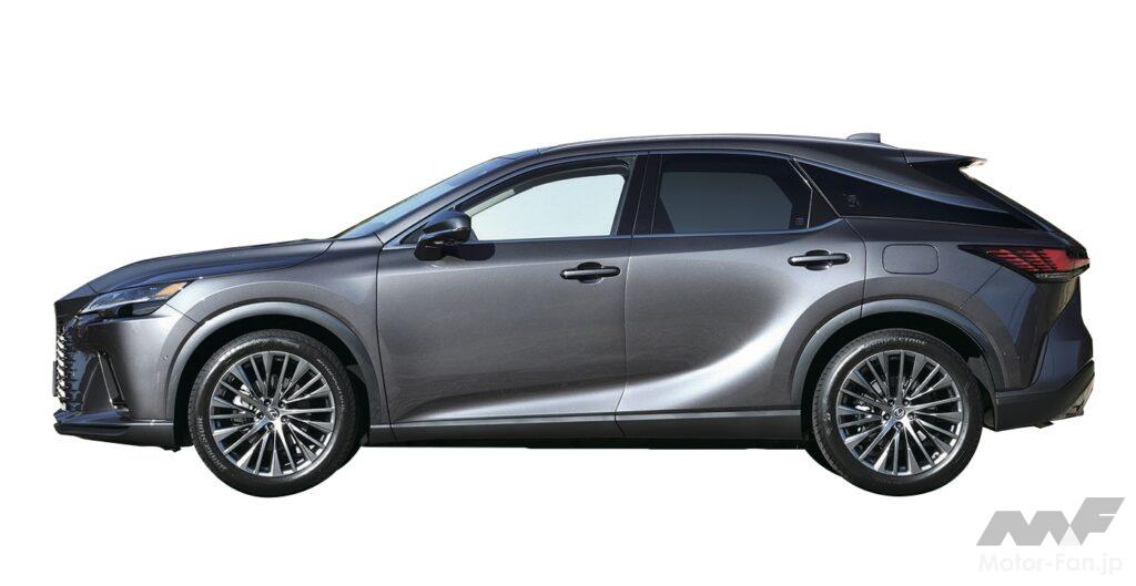 最大マーケットである北米での販売に軸足を置くために世代交代のたびに大型化を繰り返したこともあり、13年には日本のマーケットに照準を合わせて新規開発されたトヨタ・ブランドのハリアーが再登場。以降、日本のRXはハリアーとは別モデルとして展開されている。ここに紹介する最新型は22年末の登場。初代から数えると五世代目となるが、前述のような経緯で日本では3代目のRXとなる。こうして、コンパクトさを重視する日本の一部ユーザーへの配慮から解放されたこともあり、最新モデルの2850㎜というホイールベースは従来型比でさらに60㎜の延長。全長は従来型と同等に収められたものの全幅は25㎜拡大され、1920㎜にまで成長を遂げた。