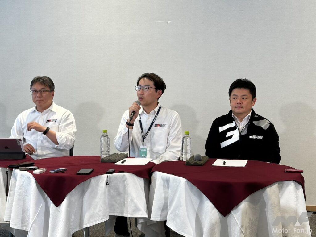 5月26日決勝日、レース終了の2時間ほど前に行なわれた会見(GRレーシングカンパニープレジデント高橋智也氏、車両開発部先行開発室室長三好達也氏、GRパワトレ開発部主査小川輝氏が出席)で、今回の富士24時間を総括した。