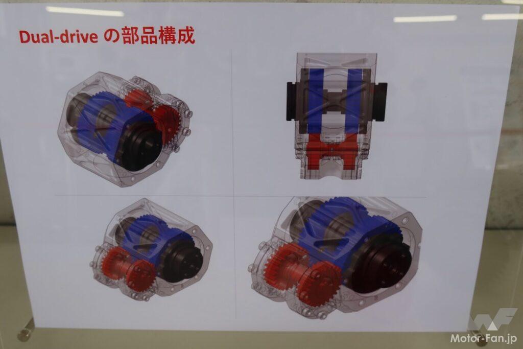 2024年の富士24時間に向けては、Dual-Driveと呼ぶクランク機構を導入。これによりクランクの両端からモータートルクを入力することが可能になり、ベアリングの負荷が軽減された。開発の段階ではオイル潤滑などでベアリングの耐久性を向上させるアイデアなど4つか5つの案があったというが、そのなかで最も効果が高かったのが、Dual-Driveだったという(シンプルな機構なのもポイントだ)。