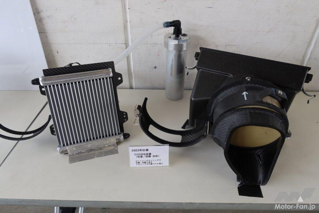 液体水素エンジンGRカローラは2023年11月に富士スピードウェイで開催された最終戦で、CO₂回収装置を投入した。2024年の富士24時間では、新型のCO₂回収装置を投入している。