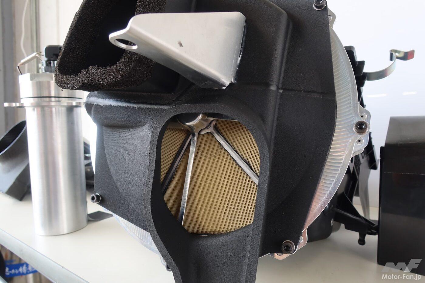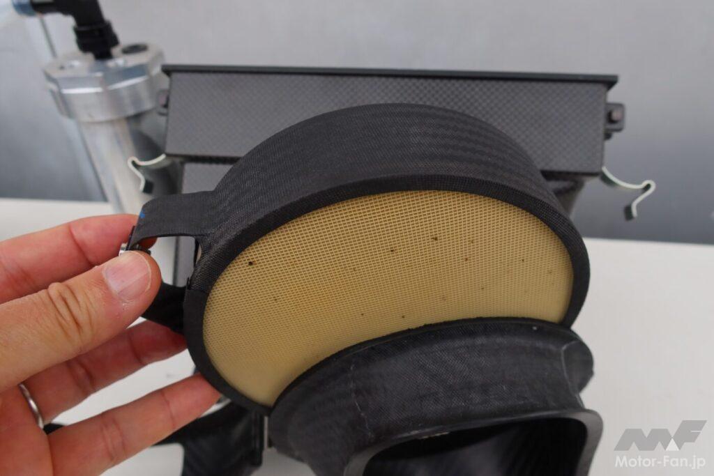 2023年の液体水素エンジンGRカローラは、ピットストップのたびにメカニックがCO₂を吸着するエアクリーナー部のフィルターを取り外し、脱離部のフィルターと入れ替えていた。2024年の新型CO₂回収装置は、吸着と脱離の工程切り替えを自動化した。
