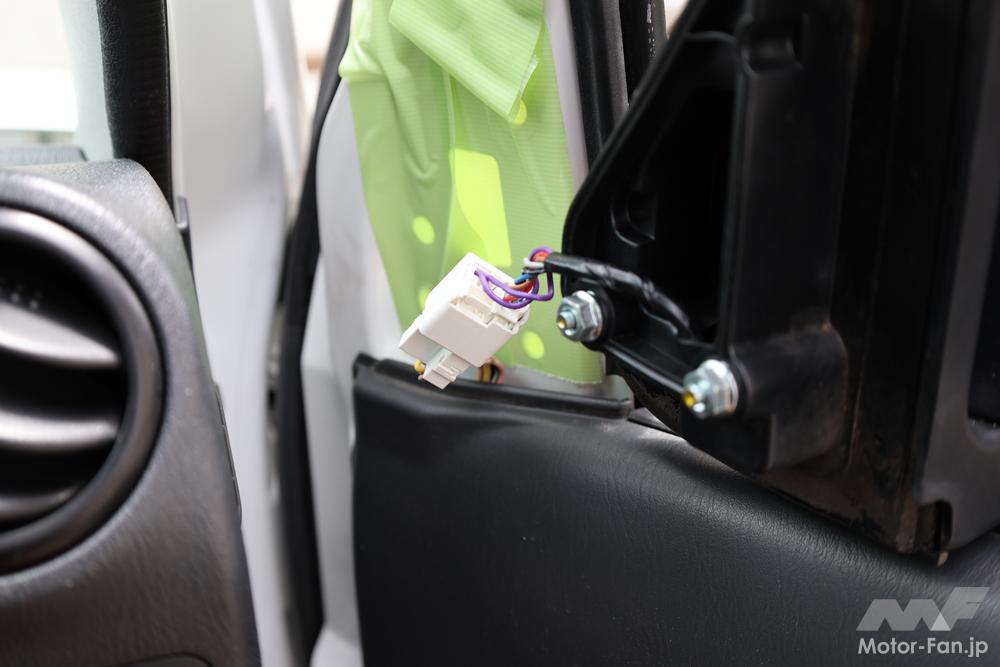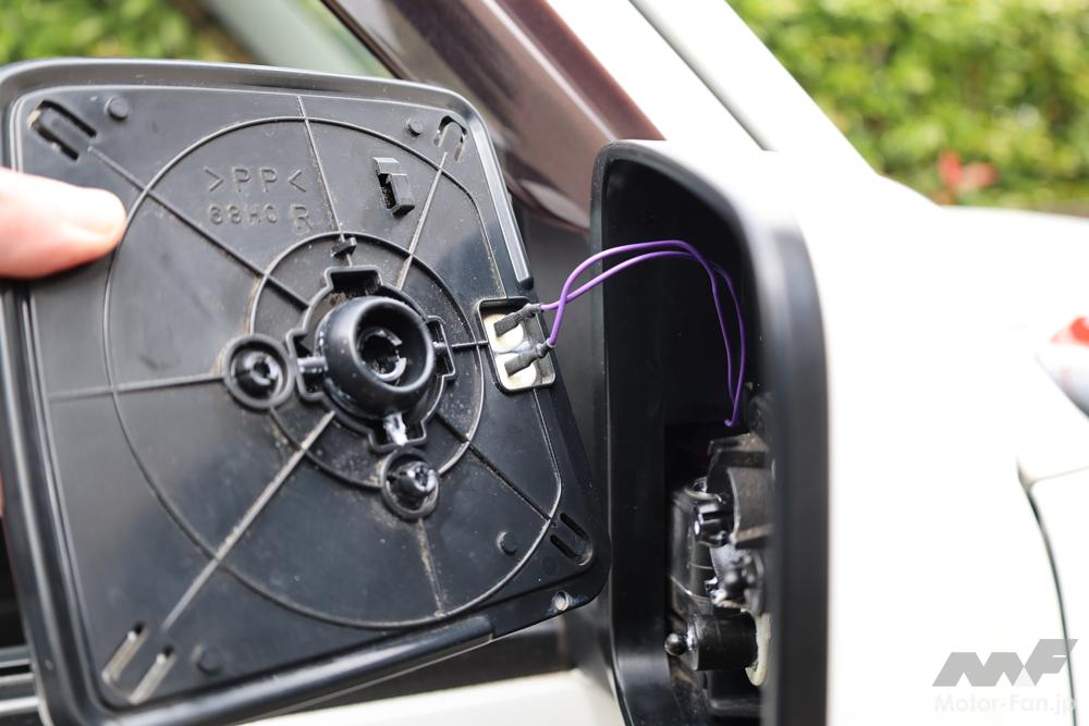 そうそう、ミラーをはめる前に、くもり取り熱線の配線接続をお忘れなく。
