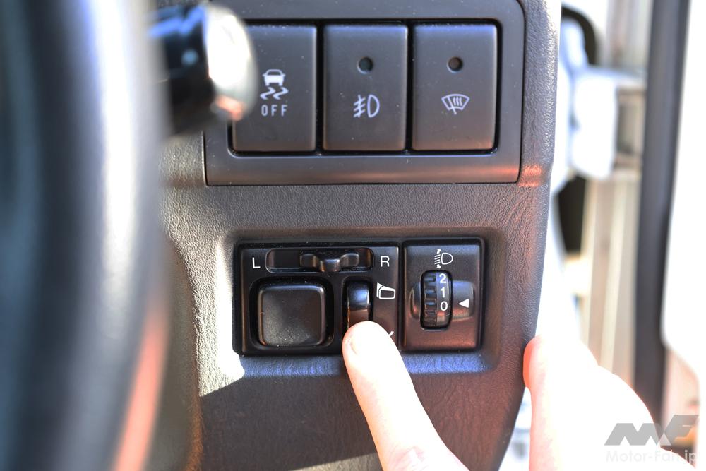 動画に入れなかったが、電動開閉のほか、スイッチ操作できちんと鏡面が上下左右に動くか、ミラーヒーター付車なら、スイッチ押しでシートが暖まるかどうかも確認しておこう。