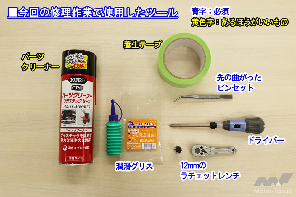なお、これは最初に掲げるべきだったが、今回の修理作業に使った工具をご紹介しておく。