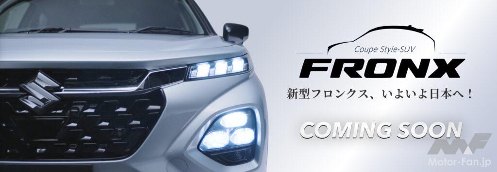 スズキは、コンパクトSUVのグローバルモデル「フロンクス」の日本導入について先行情報を公開した。 新型フロンクスのは日本発売は2024年秋頃を予定しているという。