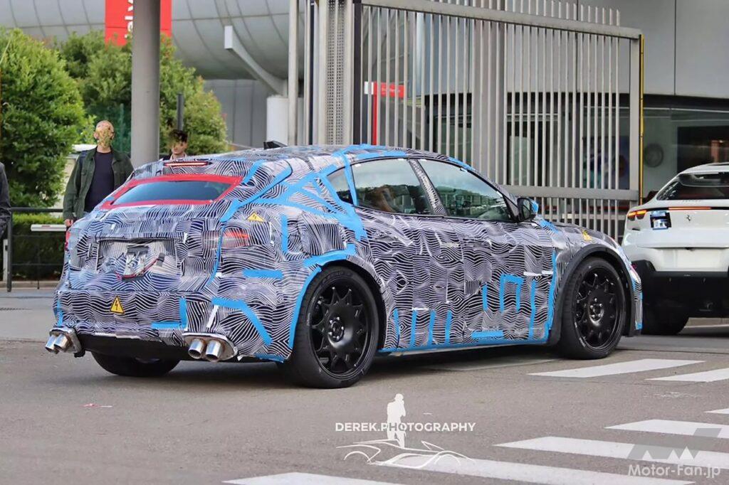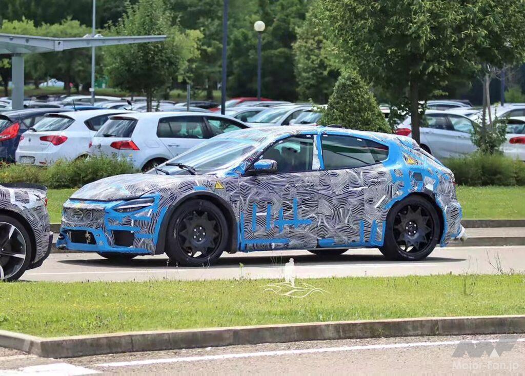 DEREK.PHOTOGRAPHYが捉えたプロトタイプは、ボディを完全にカモフラージュ。マセラティSUV「レヴァンテ」のボディに、フェラーリ「ローマ」のヘッドライトを装備。両モデルから供給された暫定的なコンポーネントを搭載した、EVの初期開発段階と思われる。