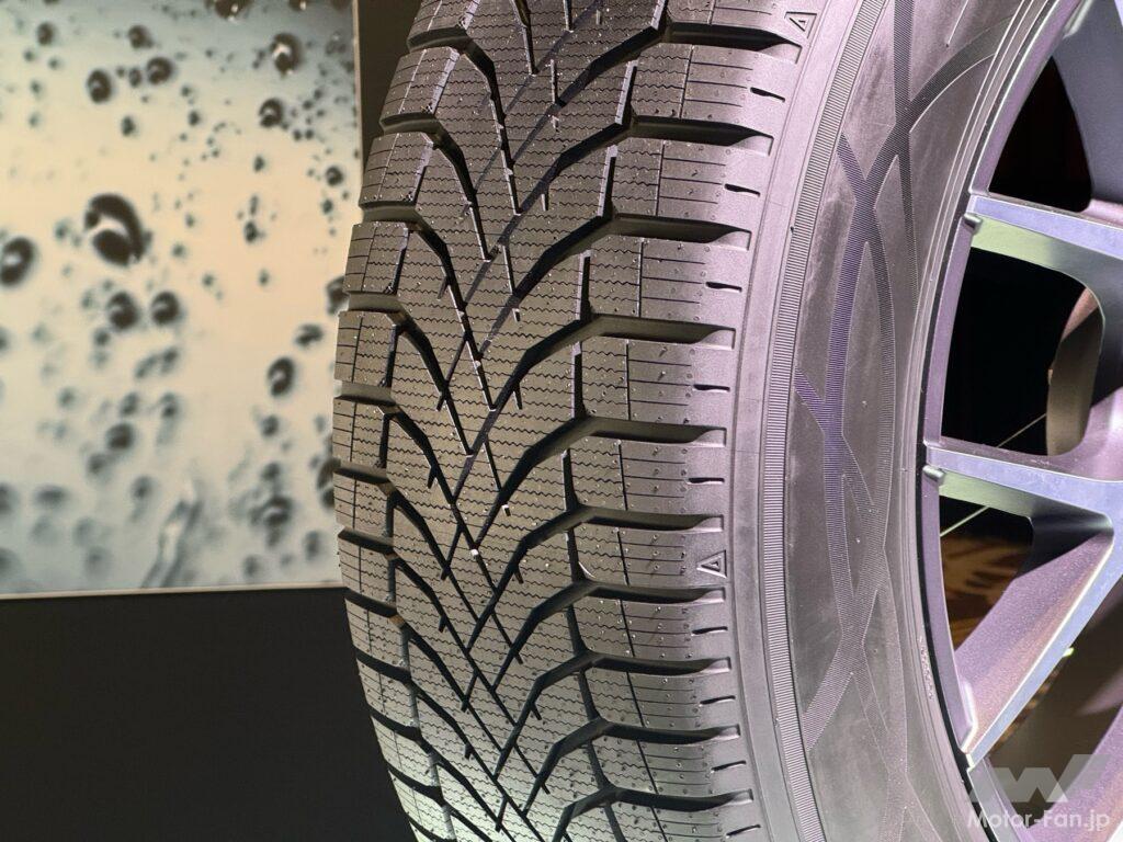 これら2つのスイッチを組み合わせることで、ドライ、ウエット、雪上、氷上といったあらゆる路面で高い性能を発揮する。また、高速道路冬用タイヤ規制でも走行可能な「スノーフレークマーク」に加え、国連規定で定められた氷上性能の基準をクリアしたタイヤを表す「アイスグリップシンボル」も刻印されている。