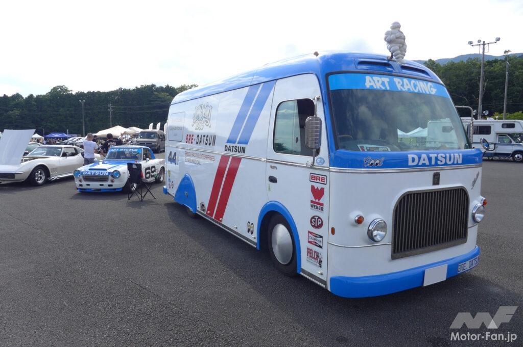 愛知県名古屋市のアートレーシングが会場に持ち込んだダットサン2000(SR311)の輸出仕様をBREレーシング仕様と、それを運ぶためのトランスポーターとしてトヨタ ・コースターを1950~1960年代にフェラーリなどのレーシングチームが使用したフィアット642 RN2バートレッティをモチーフに製作したトランスポーター。カスタムビルダーとして有名な同社は、ドラッグレーサーやカプチーノベースのオースチン・ヒーレー・スプライト(カニ目/フロッグアイ)などを製作した実力派の工房で、トランスポーターは原型が一瞬わからないほど大胆かつ美しくカスタマイズされている。