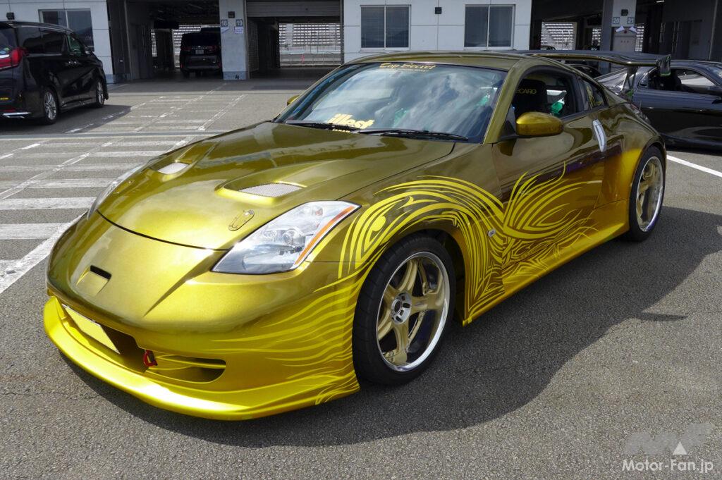 エアロパーツで完全武装した上で、派手なイエローゴールドにカスタムペイントが施されたスポコン仕様のZ33型フェアレディZ。