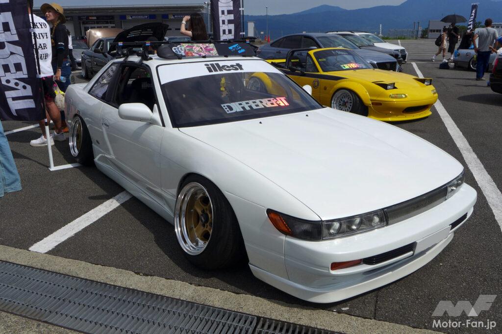 シルビア最大のヒット作・S13はドリフトなどのモータースポーツでも人気のマシンだが、スタンス系の素材としても注目度が高い。写真の車両は足回りをベタベタにローダウンした上でお約束のオニキャンとし、WORK EQUIP40を組み合わせている。