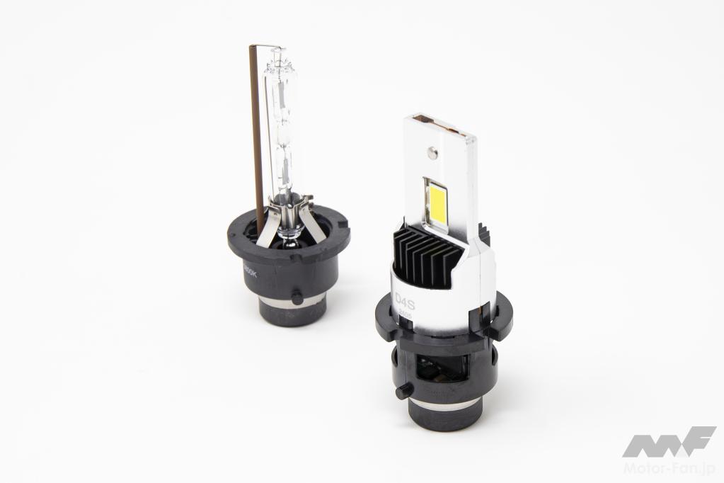 台座部分を純正HIDバルブと同じ形状、同じサイズに近づけたことで、バルブ形状が適合すればほとんどの車両に取付可能だ。 さらにLEDを安定して大光量で発光させるため、バルブ先端から後方の放熱フィン部分まで、熱伝道率の高いアルミニウム合金でボディ全体を一体成型している。