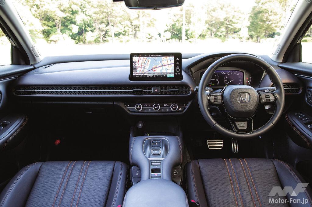 ZR-Vのデザインは最近のホンダデザインの典型で、付加的な装飾を排した〝線と面〞で見せるタイプだ。正直なところ写真映えするタイプではなく、2023年4月の発売前はデザインについて批判的な意見も目立ったが、街なかで見掛けるようになった最近は否定派も減ってきたように思える。一見すると斬新だが基本プロポーションはオーソドックスで、後席や荷室も十分に広い。