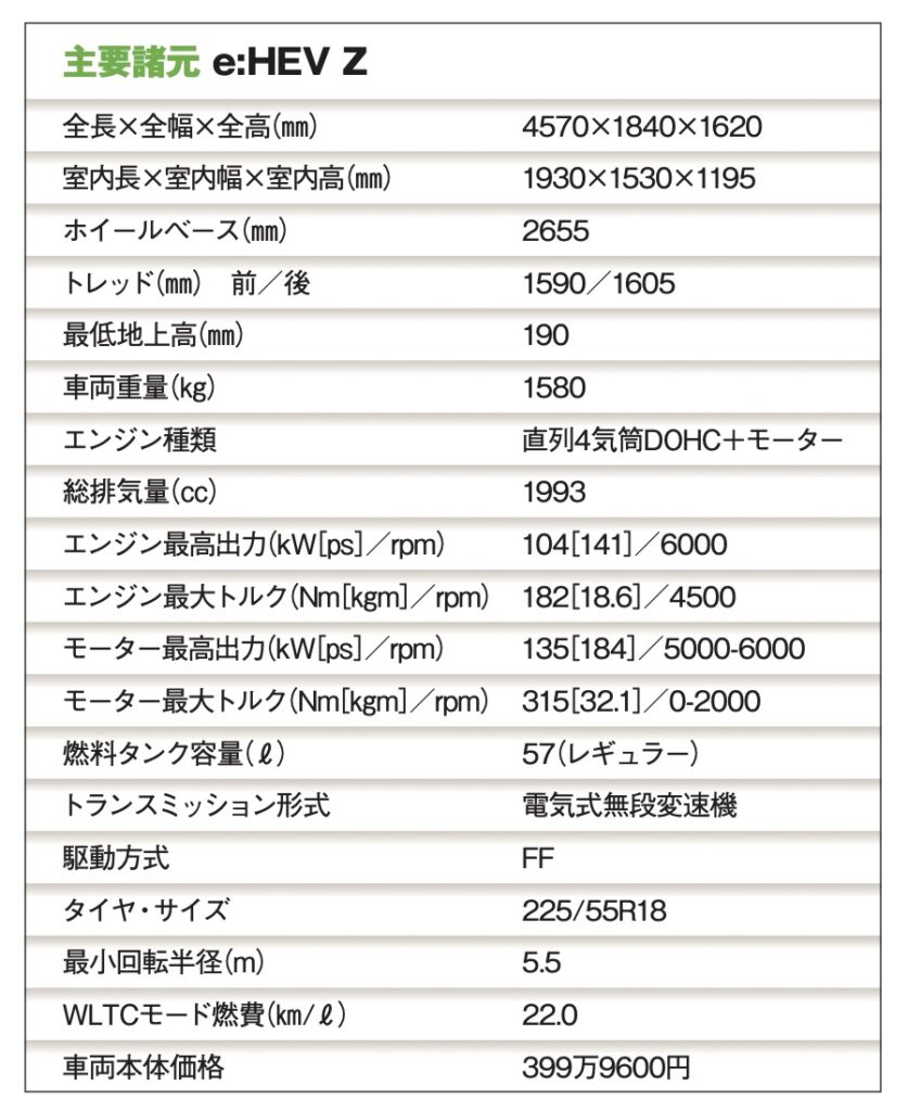 WLTCモード燃費 22.1 ㎞/ℓ ※「e:HEV X」のFF車