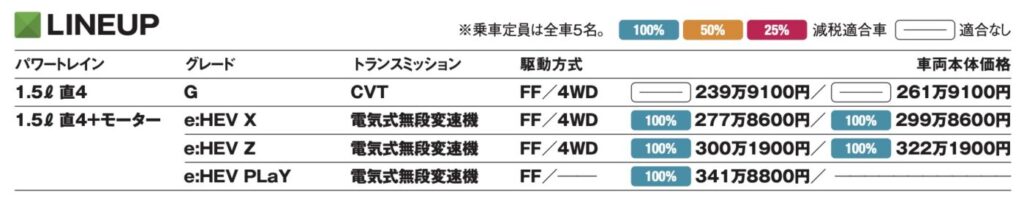 WLTCモード燃費 25.0 ㎞/ℓ ※「e:HEV X」のFF車