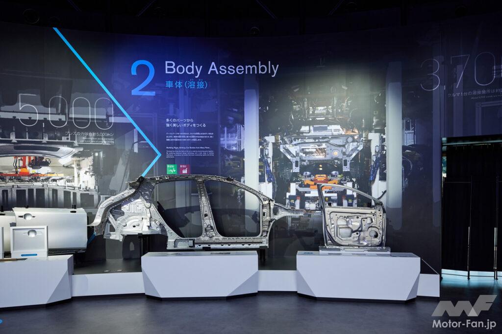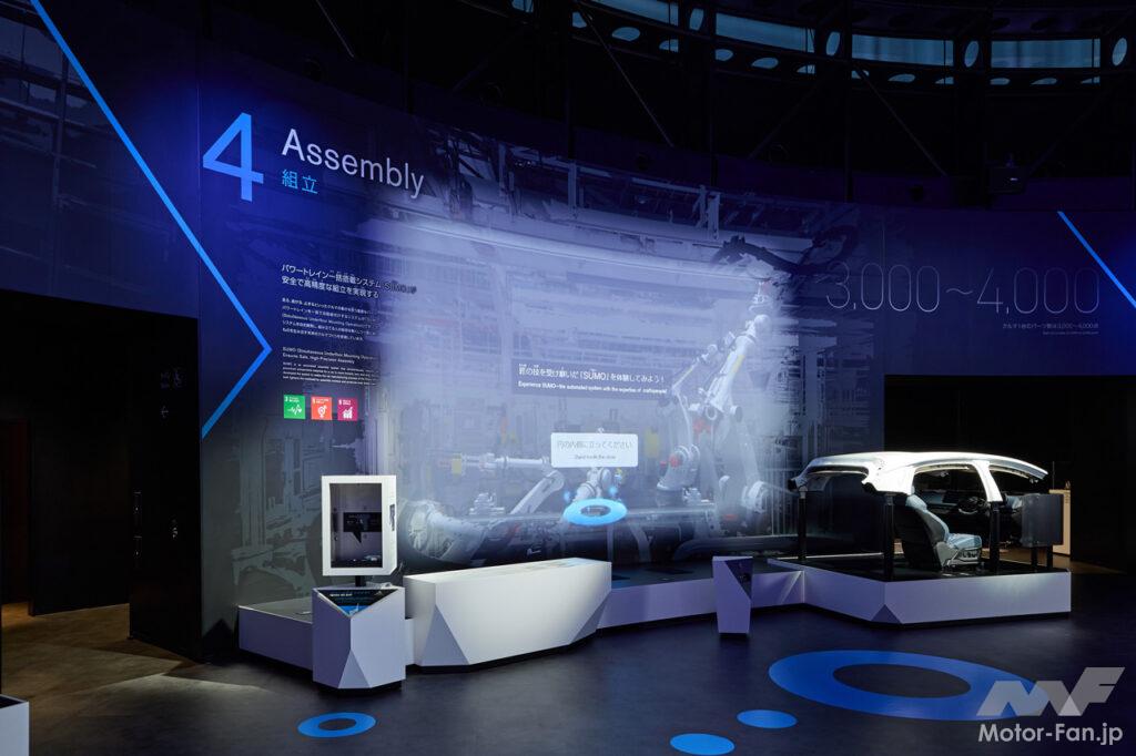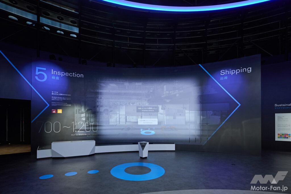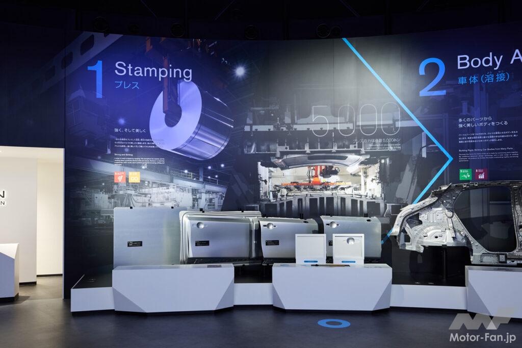 施設内ではクルマが安全や環境に配慮しながらどのようにつくられているのかを、「プレス」「車体(溶接)」「塗装」「組立」「検査」の5つの工程に分け、子どもから大人まで幅広いゲストに理解してもらえるよう、映像や部品の展示などを通じて分かりやすく紹介する。