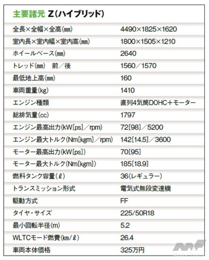 ガソリン車は従来の1.8ℓから2.0ℓダイナミックフォースエンジンに変更。室内では「Z」の場合、従来の7インチから12.3インチに拡大したディスプレイの採用が目玉だ。