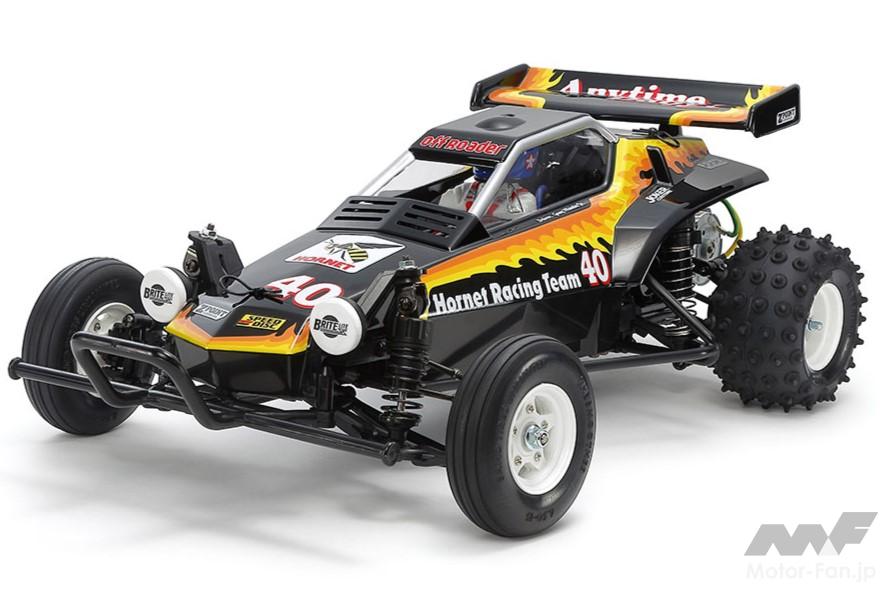 他方、タミヤもリバイバル系のバギーをリリース。『1/10RC ホーネット EVO.』(車両のみ、2024年12月発売予定、予価19800円・税込)は、1984年に登場して2WDオフロードRCカーのブームを生み出したホーネットのシャーシ性能を高めたアップグレード版だ。