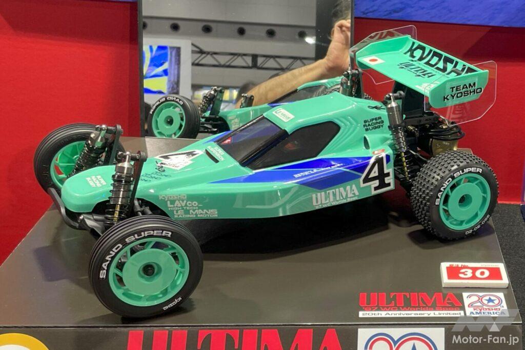 まずRCカーではバギー系がアツい。RC界の雄・京商は、1987年にイギリスで開催されたEP(電動)オフロードカー世界選手権2WDクラスにおいて表彰台を独占するという伝説的レースで京商ワークスチームが使用し、その設計者であり自身も選手として世界戦に出場した粉川 章氏のマシンをモチーフに、京商アメリカの創業20周年記念モデルとして限定販売されたマシン『1/10 EP 2WD レーシングバギー 京商アメリカ20周年記念限定モデル アルティマ ’87世界戦スペック』(2024年11月発売予定、予価66000円・税込) が登場する。