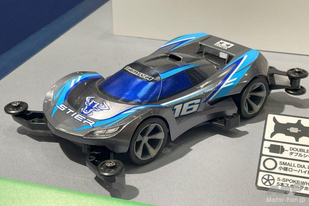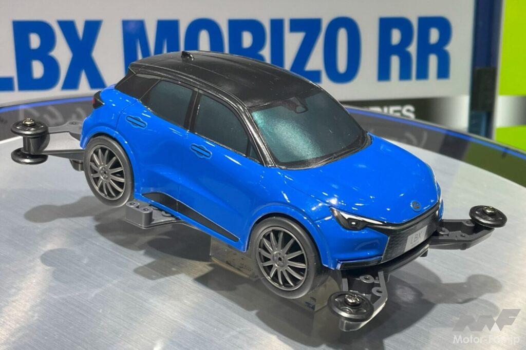 “実走”系ホビーで忘れてならないミニ四駆。なんと会場発表の隠し玉、『ミニ四駆PRO レクサスLBX MORIZO RR(MAシャーシ)』が2025年発売予定のアナウンス(価格未定)。MAシャシーにダブルシャフトモーター、レシオ3.5:1のギヤ、小径ローハイトタイヤの組み合わせで期待の走りを実現だ。