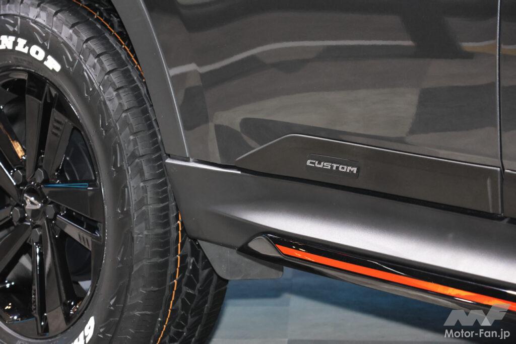 足元は、ダークカラーの17インチホイールでワイルド感を演出しつつ、オールテレインタイヤを組み合わせることで、走破性も高めている。