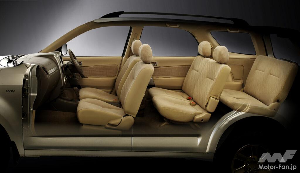 2006年に登場した2代目は「ビーゴ」を名乗ったが、海外ではテリオスの名を継承。驚くべきことに、ロングホイールベース仕様の3列7人乗り仕様まで存在した。日本では、2016年で販売を終了しているが、海外では、2018年に3代目となる現行型へと進化を遂げた。