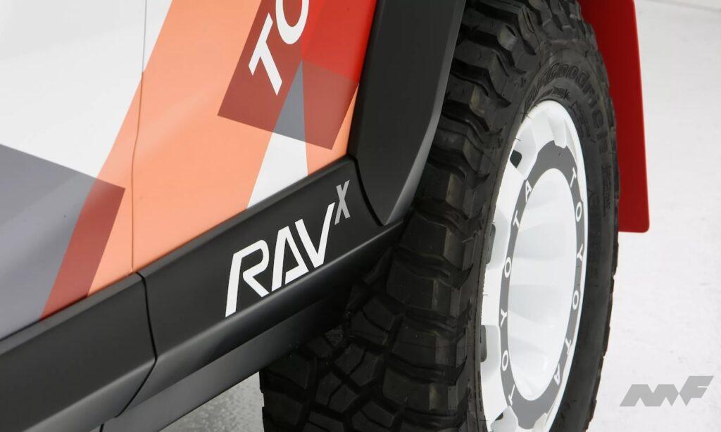 「単なるコンセプト以上のもの」であると述べているRAV-Xは、人気のRAV4 PHEVをベースに、オフロード対応にしたもので、強化されたサスペンション、アグレッシブなタイヤ、再考されたボディキットを備えたラリーカーからインスピレーションを得ている。