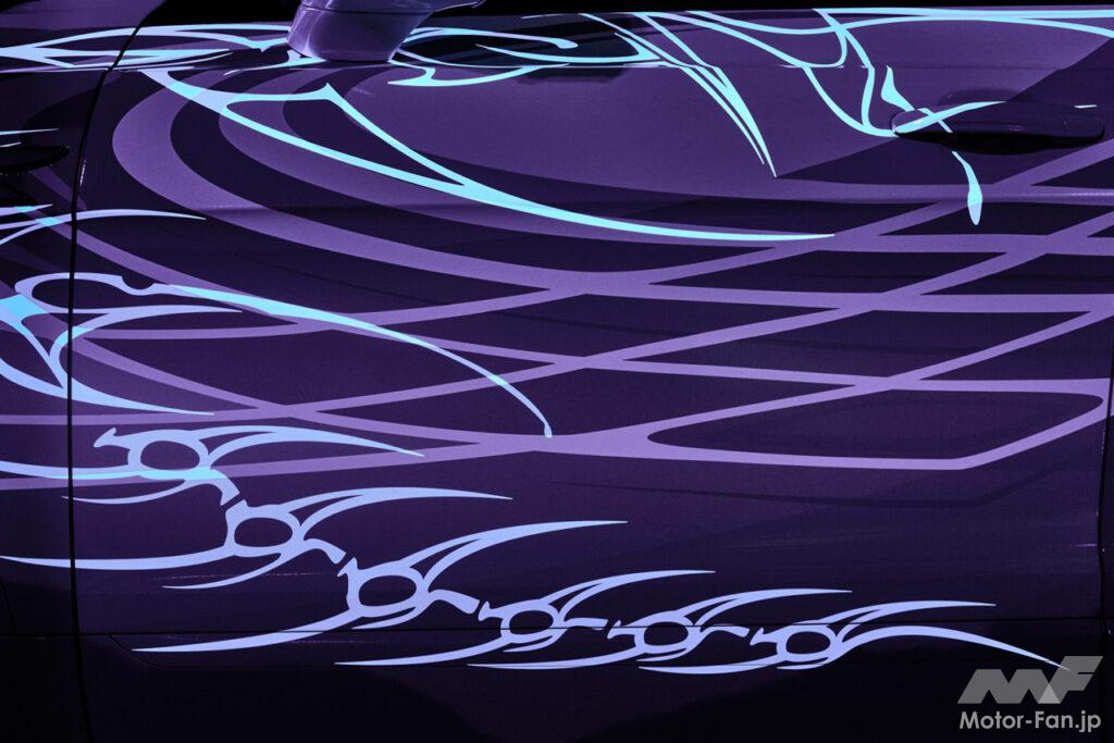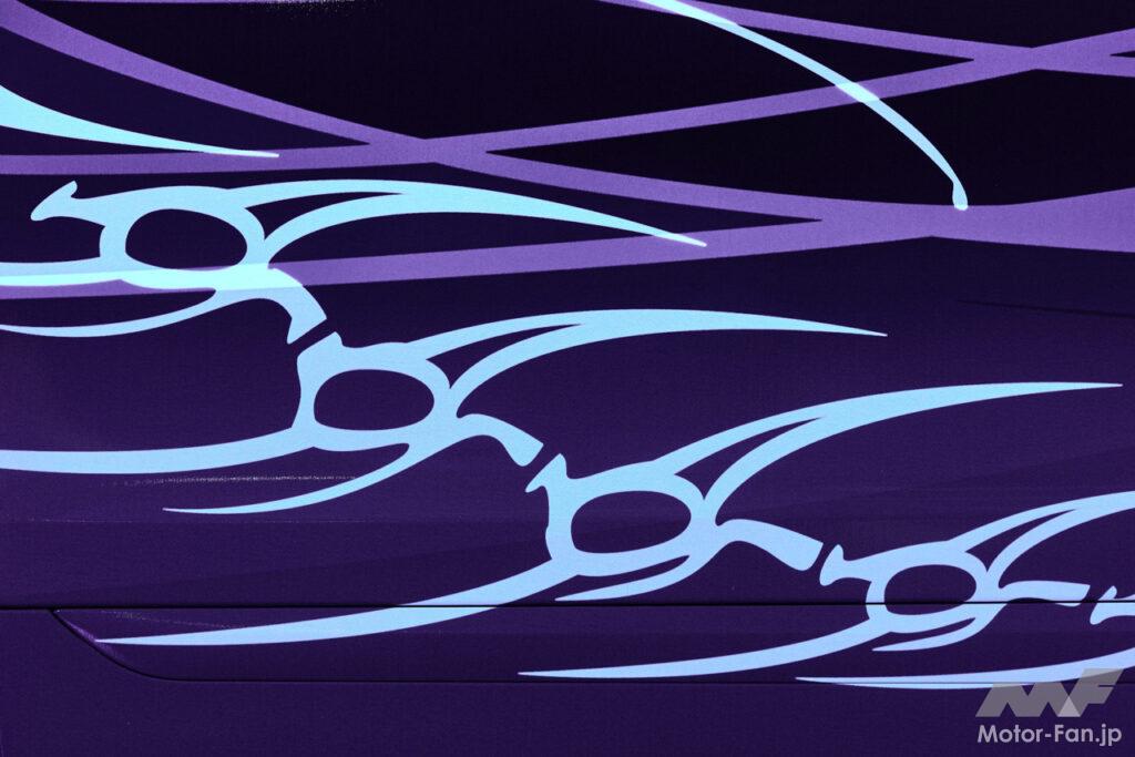 車両全体に施されたユニークなデザインは、光を浴びるたびにその表情を変え、技術と芸術の融合を体現
