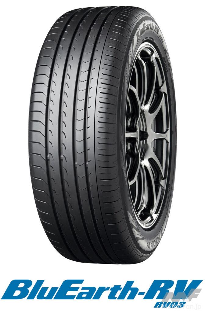 「ブルーアースRV RV03」はミニバン専用の低燃費タイヤで、同社のミニバン専用タイヤとしては7年ぶりの新商品となる。従来品「ブルーアースRV-02」から高い評価を得ている国内タイヤラベリング制度のウェットグリップ性能最高グレード「a」と転がり抵抗性能「A」(※)に加え、優れた耐ふらつき性能や耐偏摩耗性能を踏襲しつつ、新たな付加価値として「さらに長持ち、ますます快適なミニバン専用タイヤ」をコンセプトに耐摩耗性能と静粛性を一段と高めた。