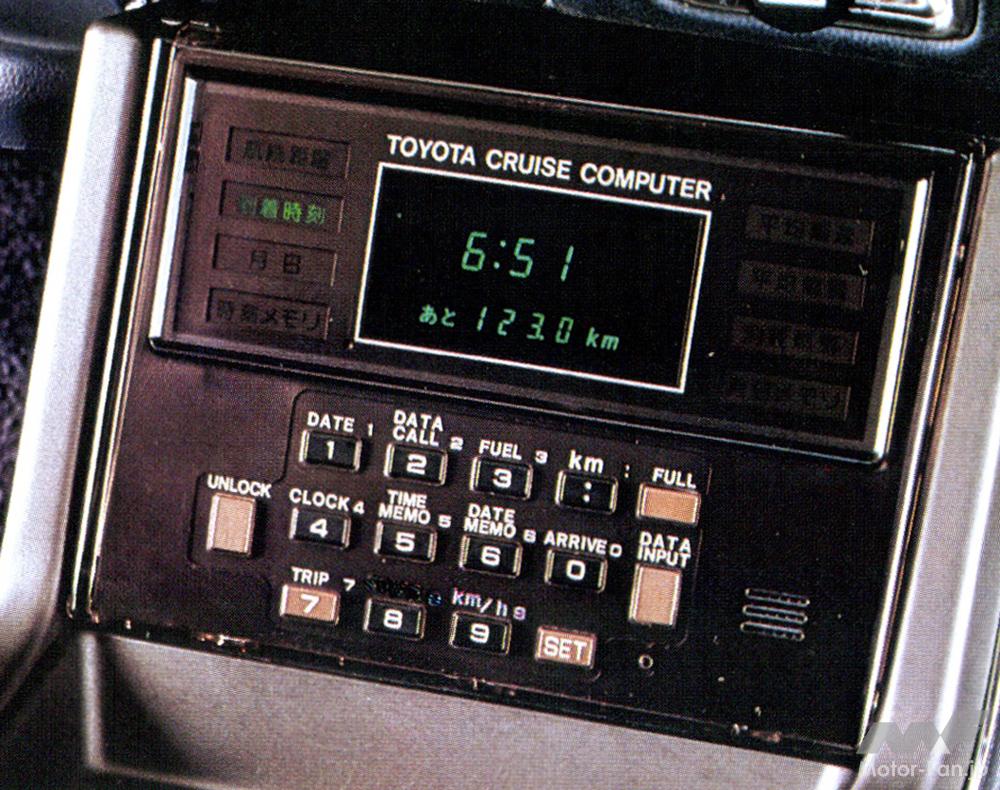 当時のクラウンやマークIIに載っていたものは電卓の親分みたいな姿でボタンがずらり! それがまた商品魅力でもあったが、煩雑に見えるものでもあった。