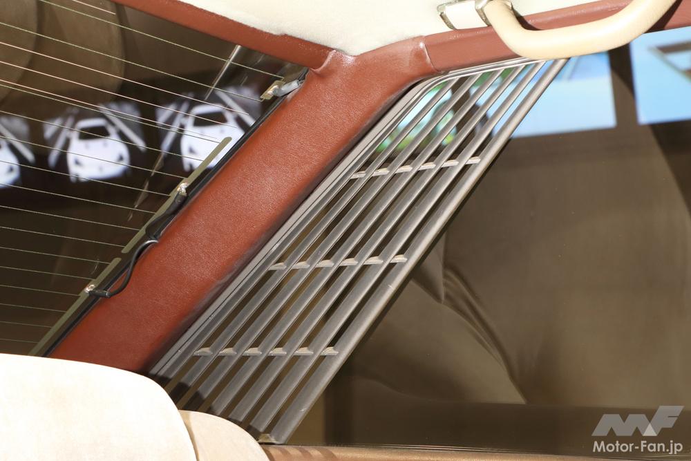 この頃になると、70年代のクルマの外観にあったエアアウトレット(室内気の排出口)は少しずつ姿を消し始めた。スタイリング要請だろう。いまのクルマは後ろのバンパーの右か左どちらかの裏にあり、簡単なバルブで追い出すようになっている。