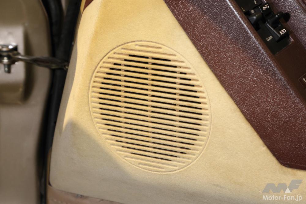 最上級GT-EXTRAはふた付きの2重式。このソアラにはあってもよさそうなドアポケットがないから、当時のオーナーは道路地図帳を入れたのだろう。いまなら軽量モバイルパソコンを収めるのにうってつけだ。