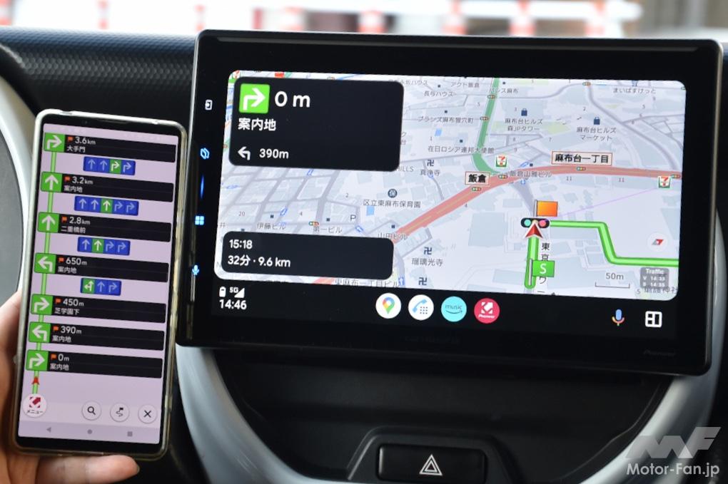 結論から言えば、ディスプレイオーディオ使用時に比べると画面はスマートフォンのみとなるため、表示サイズや情報が限られるのは仕方ないところではあるが、ナビゲーションとして不自由は感じなかった。