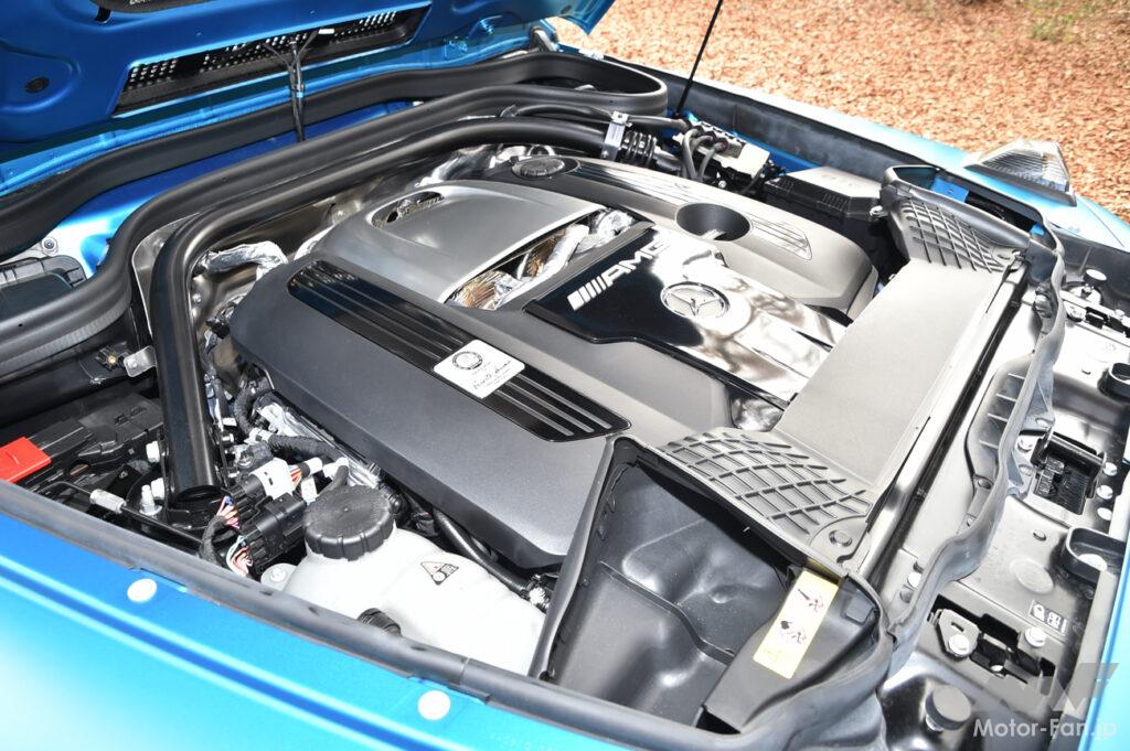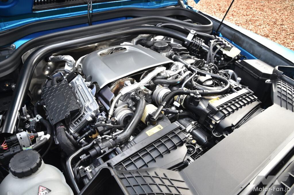 さてオンロードでの対抗馬は、前述した通りシリーズ最強の「AMG G63 LAUNCH Edition」だ。そのパワートレインには430kW(約585PS)/585Nmの4.0L V型8気筒ツインターボユニットが収まり、これを最高出力15PS(定格出力10kW)/最大トルク208NmのISGがアシストする。