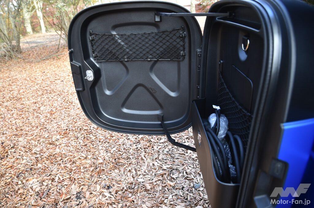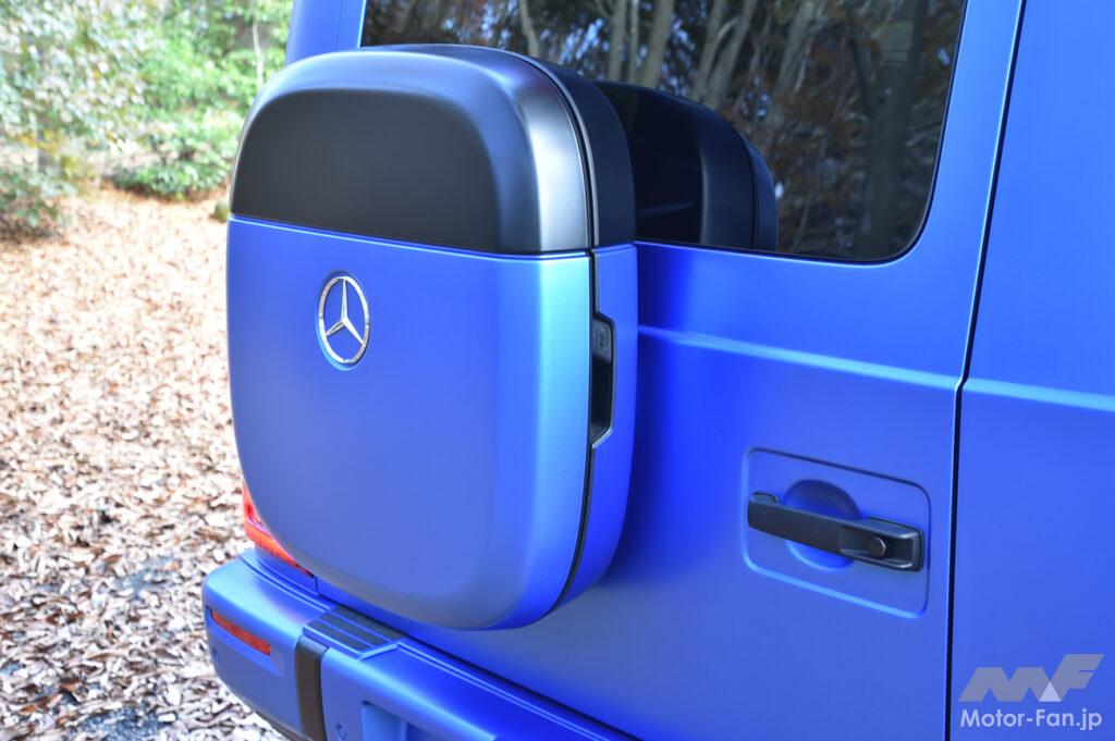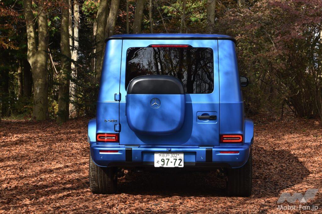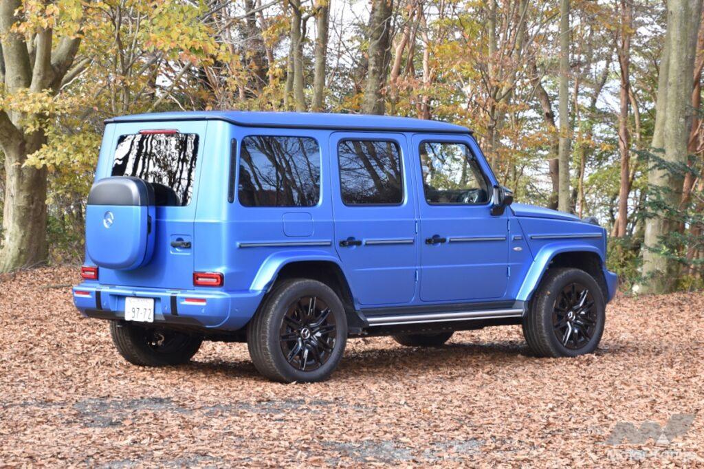 ピュアEVとなったG580の全長は4730mmと、AMG G63およびG450Dの4860mmと比べて意外にも、130mmほど短い。ちなみにリヤゲートに装着されるボックスは充電用ケーブル用で、これを取り除いた長さだと4625mmとなる。