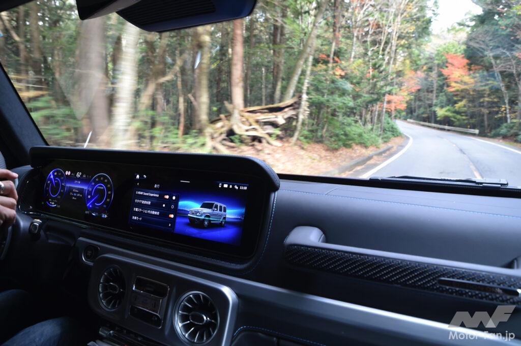 ハイライトは当然走行モードを高めたときで、それに併せてV8エンジンのサウンドも高まって行く。ピュアEVであるG580もスポーツモードでは電子サウンドが雰囲気を盛り上げるが、まだまだ“生音”の立体感には敵わない。