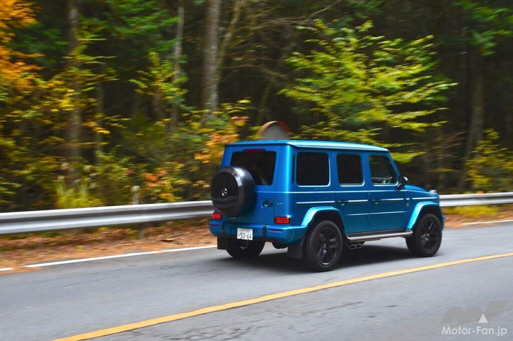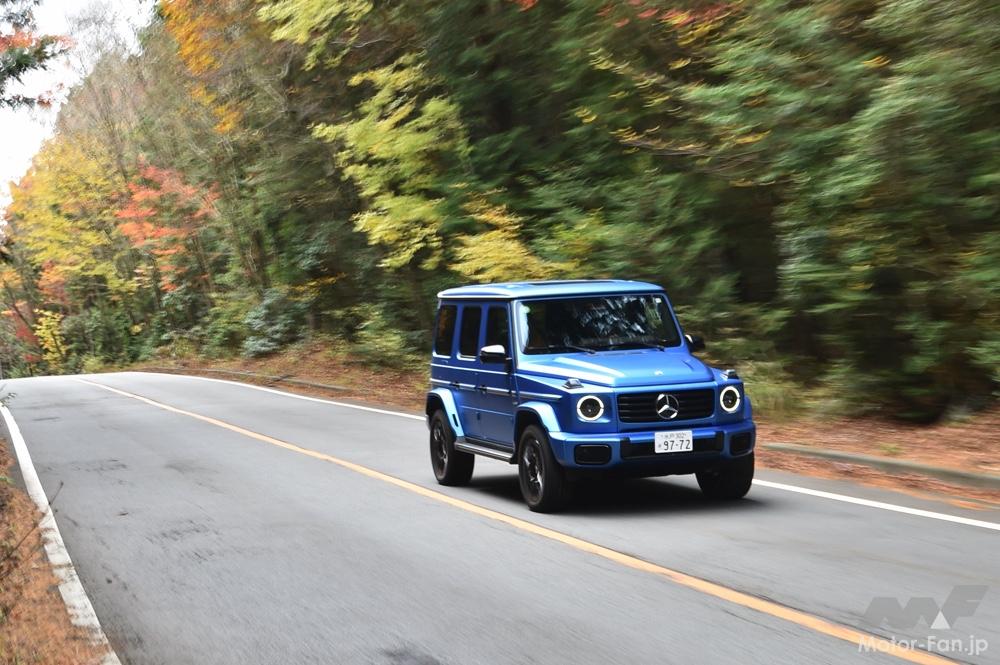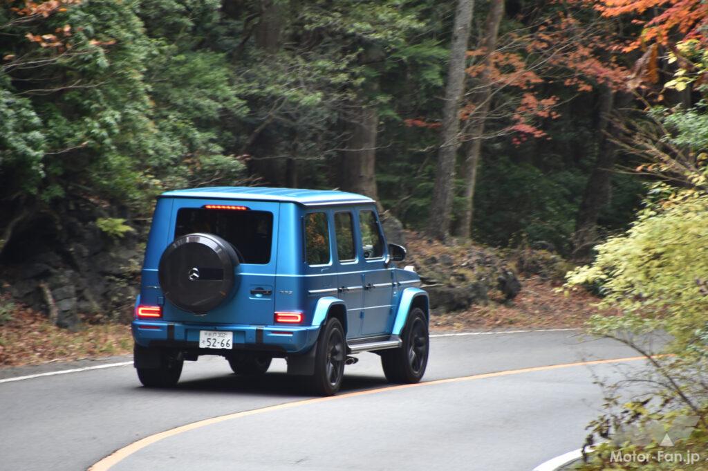 ひとことで言えばその走りは、“超エモい”。ノーズにV8エンジンを搭載するクロカンとは思えぬほどにハンドリングは整っていて、EVのGクラスに負けず劣らず、ワインディングロードをきちんと曲がる。今回から標準仕様となった可変ダンパー、そして電子制御式の油圧スタビライザーが、そのスタビリティを高めているのだろう。
