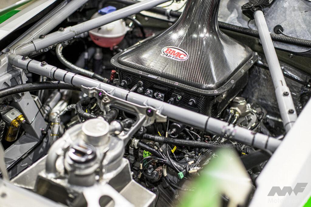 今回のBMC ブースには、2024年のスーパーGT・GT300クラスの参戦車両、No.87 METALIVE S Lamborghini GT3(ウラカンGT3 EVO2)を展示。もちろんBMCのエアフィルターがばっちり装着済み。高い吸気効率と、高い集塵能力の両立こそBMCエアフィルターの最大の魅力なのである。