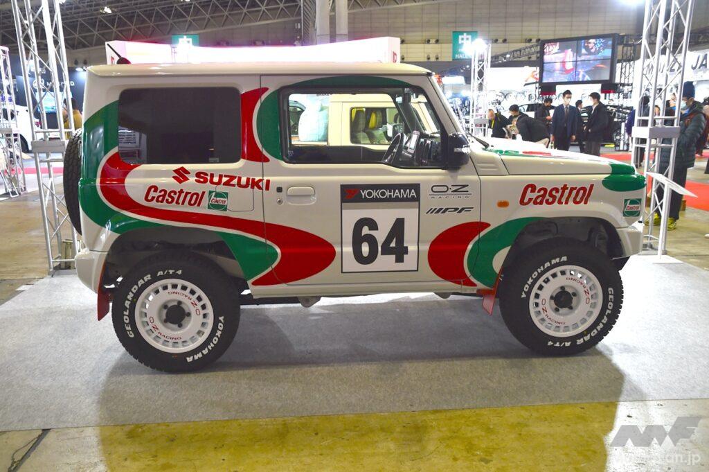 このジムニーが装着しているのは、東京オートサロン2024でDAMDが展示したカスタムジムニー(シエラ)「リトルデルタ」「リトルサンク」用に開発された「ラリーレーシング4×4」だ。東京オートサロン2024での反響も大きく、2024年5月には市販が始まり、ジムニー乗りのあいだで人気を集めているという。