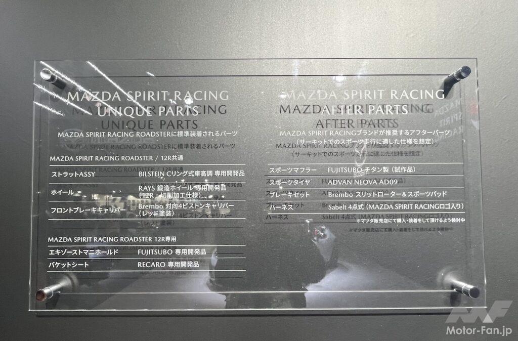 「MAZDA SPIRIT RACING ROADSTER 12R」は、内外装、エンジン、シャシーと細部までレーシングテクノロジーが詰め込まれた凄いクルマだ。しかしながら拘りの変更箇所があまりにも多岐に渡り、バランス良くまとめられているが故に、よく研究しないと走りを重視した「レーシングスポーツ」なのか高級で上質なパーツを詰め込んだ「プレミアムスポーツ」なのか、キャラクターが分かりにくく、誤解を生みやすいのではないか。