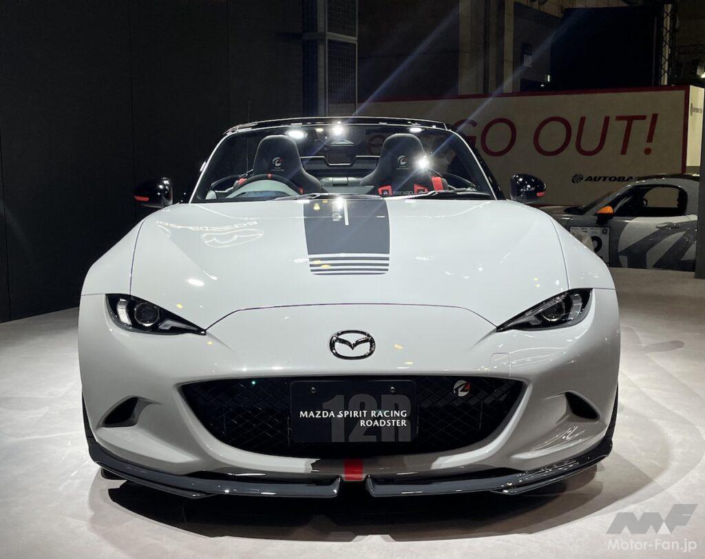 「12R(イチニーアール」のネーミングの由来はこのスーパー耐久レース出場車両のゼッケン「12」。このエアロやホイール、ボディーカラーなどが「12R」用にアレンジされ、「MAZDA SPIRIT RACING ROADSTER 12R」として市販される。エンジン、シャシー、内外装に至るまで随所にレース活動で得られた知見が落とし込まれたコンプリートカーだ。