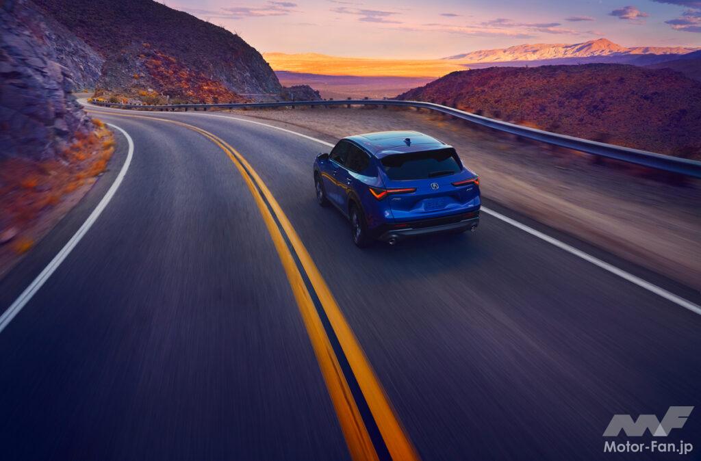 運転の楽しさを追求したアキュラADXは、インテグラと共有する先進のグローバル・アーキテクチャを採用し、ターボチャージャーによる力強いパワー、フルタイム独立スポーツチューンドサスペンション、洗練された乗り心地、ハンドリングを実現し、プレミアムなドライビング体験が追求されている。全グレードで選択可能な先進のAWDシステムは、滑りやすい路面でのトラクション・コントロール性能を向上させ、ハンドリング性能を改善する。