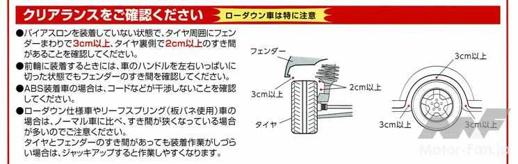 ここでメーカーが要求する、「イージーフィット」カタログ掲載のタイヤまわりのスペースの数値を載せておく。