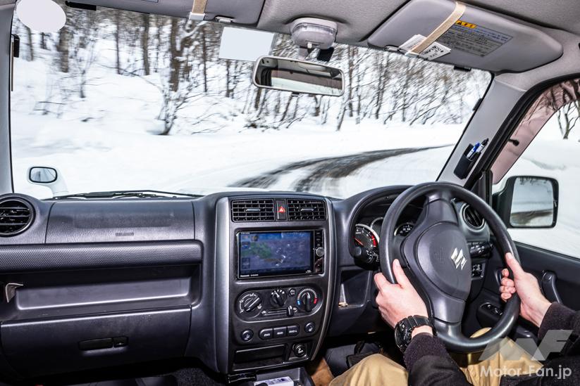 わがジムニーは古典的なパートタイム4WDだが、実際にはFWDやRWDのユーザーが多いことを想定し、テストは2WD・・・すなわち後2輪駆動状態(RWD)で行なった。