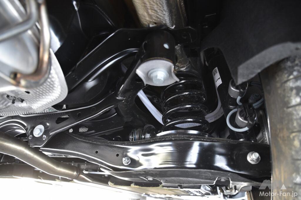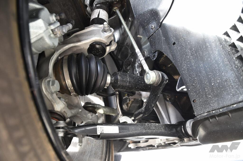 もちろんその質感には85kW(定格出力55kW)/330Nmの走行用モーターがもたらすシームレスな動力性能と、現行世代でさらに向上した遮音性が大きく貢献している。しかしその芯の部分では、電動パワーユニット(PU)やバッテリーを搭載したことによる車重の増加が、動的な質感をバランスさせている。全長で130mm、ホイルベースでは50mm伸びたボディを、どっしりと地面に抑え付けているのである。