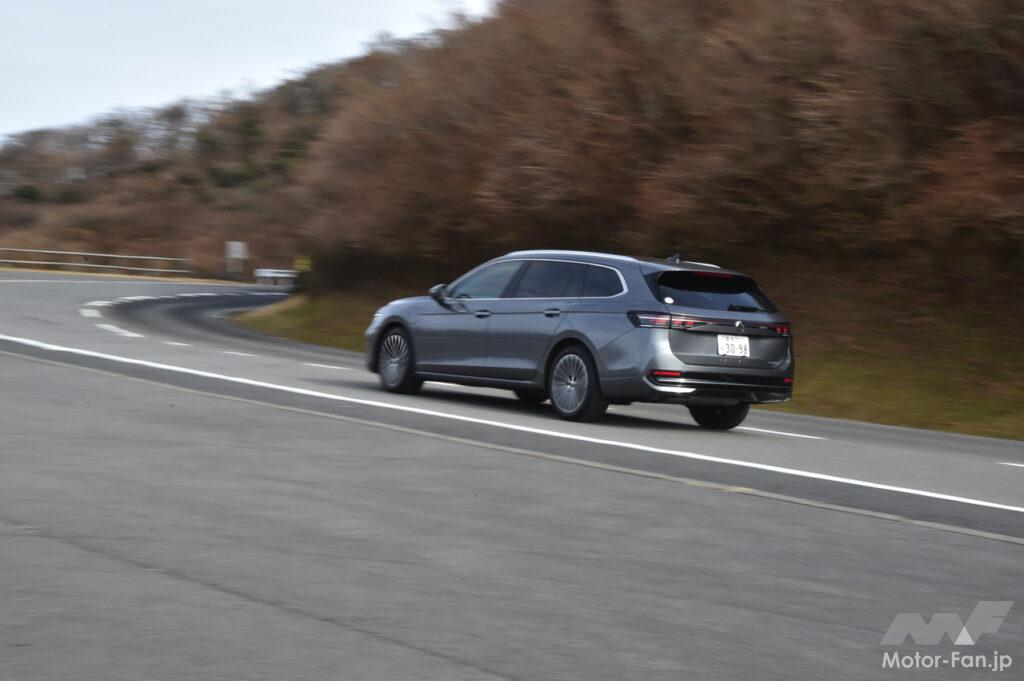 当日は試乗会場からワインディングを目指したが、旋回Gが高く周り込んだカーブが多い場面でも、パサートの走りは素晴らしかった。