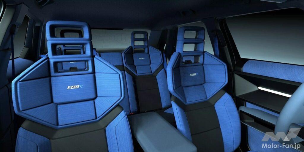 同デザイナーは、内装にも力をいれた。ハイライトとしては、レトロ風のバケットシートに鮮やかな色彩を添える青い室内装飾と、斬新なステアリングホイールのデザインが挙げられる。デジタルコックピットは最新式でありながら、いくつかの小型ディスプレイと、センターコンソールの触覚を保つための物理的なコントロールを組み合わせて、ミニマリスト的なデザインを維持しているようだ。