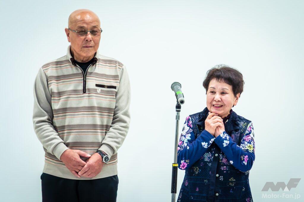 「クルマを見た瞬間に、まるで息子が帰ってきたような気持ちになりました。写真をハンドルに置いて話しかけていた日々を思い出します。息子の形見であるこのZが、みなさんの手で再び命を吹き込まれたことに心から感謝しています。私たち夫婦は80代でこんな格好ですが、晃司は身長170cmを超えるイケメンでした。その息子がこのクルマに乗ったら、どんな人でも振り返ってみるんじゃないかと思うくらい感動しています。本当にみなさん、ありがとうございました」